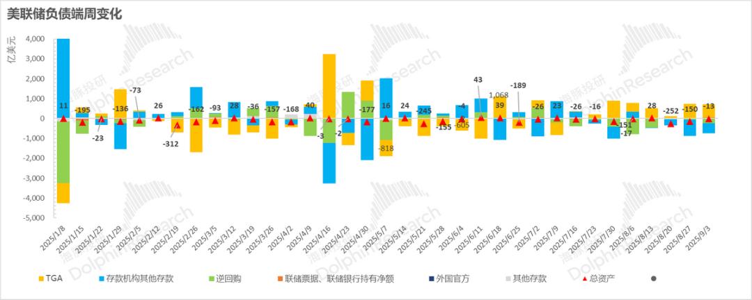 如果说上半段银行准备金余额基本未动,后半段的TGA重建可能主要是以消耗银行准备金余额为主,实际上周TGA的回升,基本就全部是以银行准备金余额来补充的。