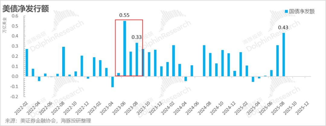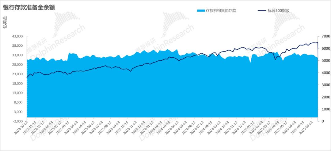 从美联储总资产的变化中也能看出,因逆回购余额的剩余空间不多,银行的存款准备金余额已经在加速消耗,8月美债净发行也创下2023年6月以来的次高水瓶,标普500指数高位徘徊。