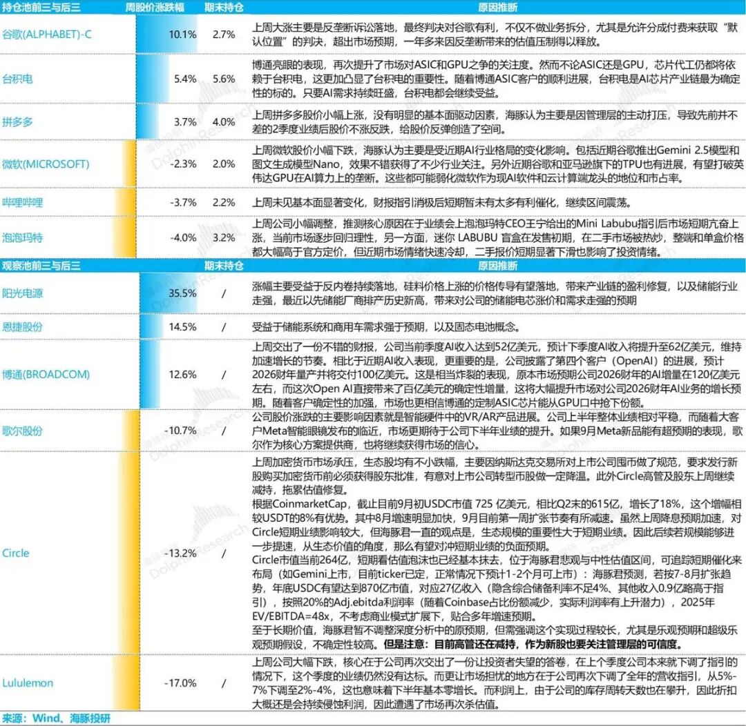 上周海豚君的虚拟组合Alpha Dolphin跑超市场指数,主要因组合持仓中重仓股台积电、拼多多,以及案件风险落地的谷歌。此外降息预期下黄金不断拉高也对指数有重要贡献。