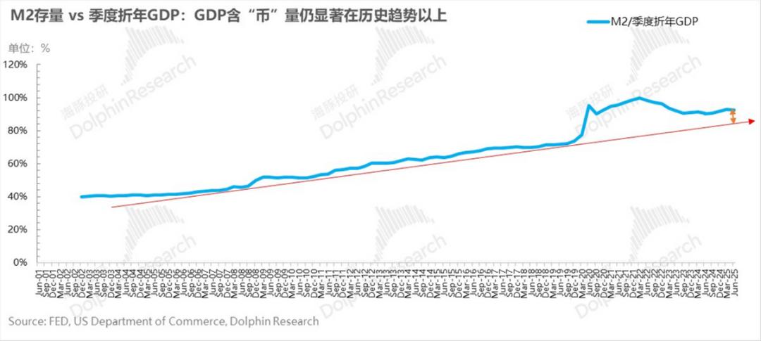 1)2008年经济危机的放水救经济,美国政府救了之后,实际之后的很多年至少在努力尝试让GDP的含水量(用M2/季度年化GDP来表示)回归到历史常规的水位上。