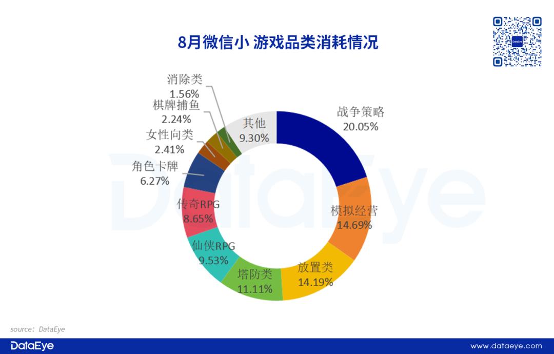 放置(含开箱)类消耗占比对比7月稍有下滑,但幅度不大。