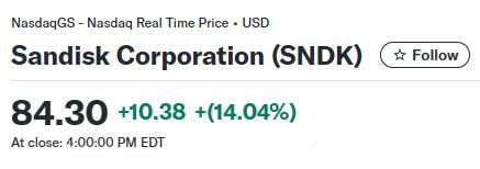 花旗将美光目标价直接拉到 175 美元,看好其财报大超预期。摩根士丹利更是把闪迪列为“首选股(Top Pick)”,目标价从 70 美元上调至 96 美元,理由是: