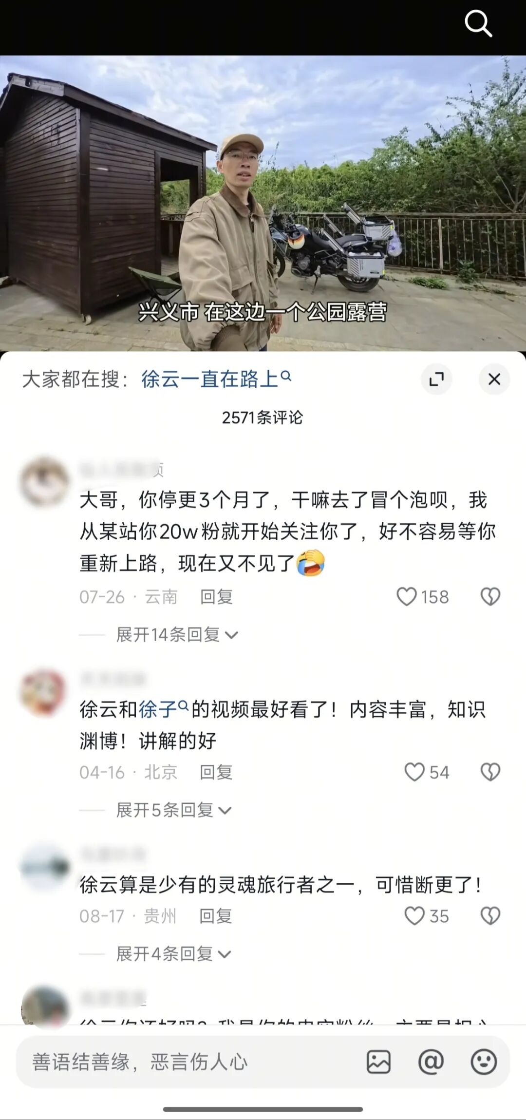 比如曾红极一时、如今持续停更的骑行大咖@徐云流浪中国,在正式进藏前,穷得兜里只剩几十块钱,差点放弃骑行回家打工。