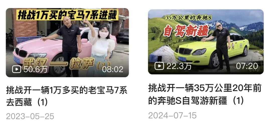 作为一名汽车维修UP主,老丁主页单纯修车视频越来越少,反倒是“挑战开一辆1万多买的宝马7系去西藏、挑战开一辆35万公里20年前的奔驰S自驾游新疆”等自驾视频,成了内容主体。