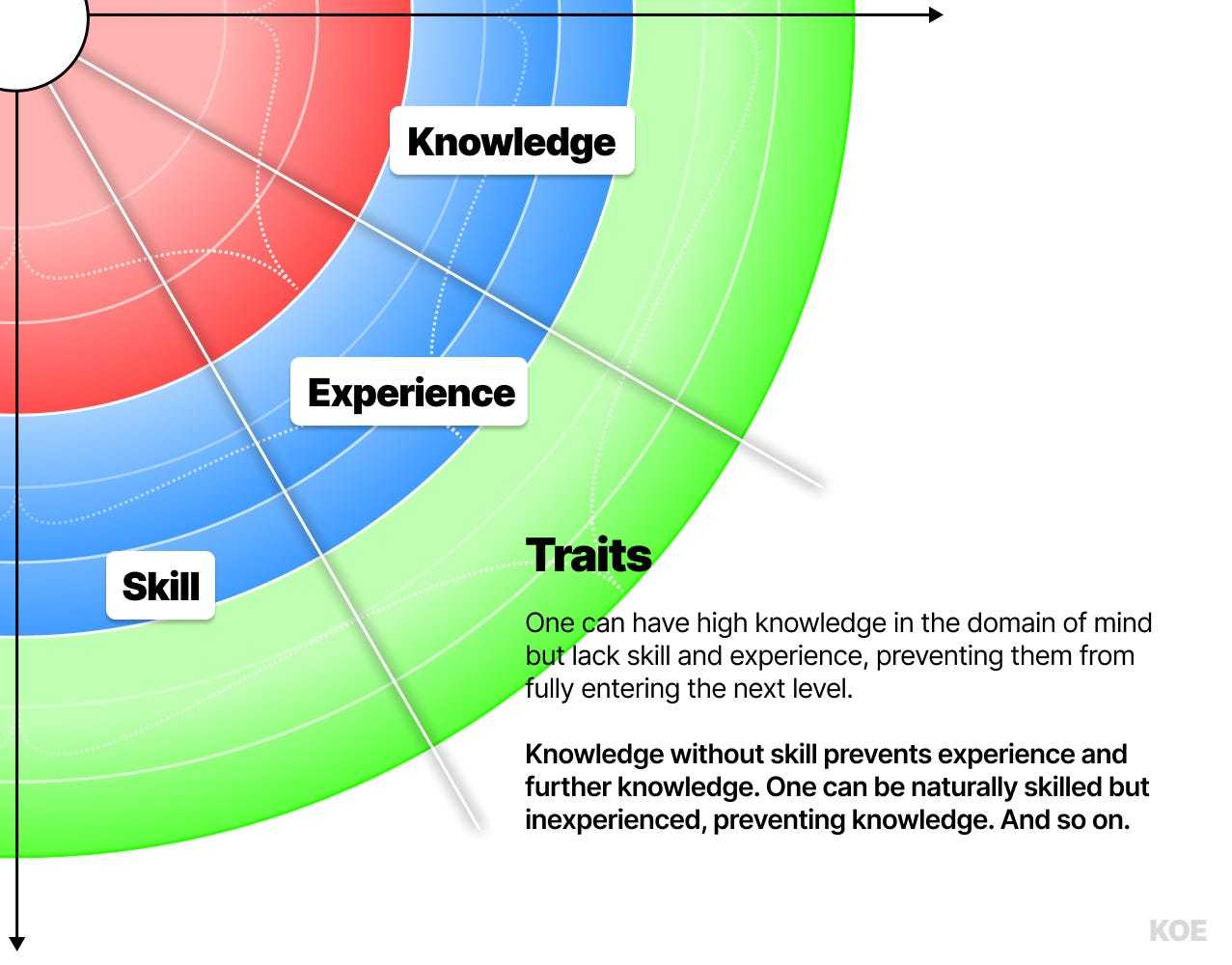 在每个阶段内,都存在一个知识、经验和技能的门槛,必须达到这个门槛,你才会看到下一个层级。如果说阶段代表纵向发展,那么特质则代表横向发展,既在未知中航行,直到你发现足够多的东西以进入下一个阶段。