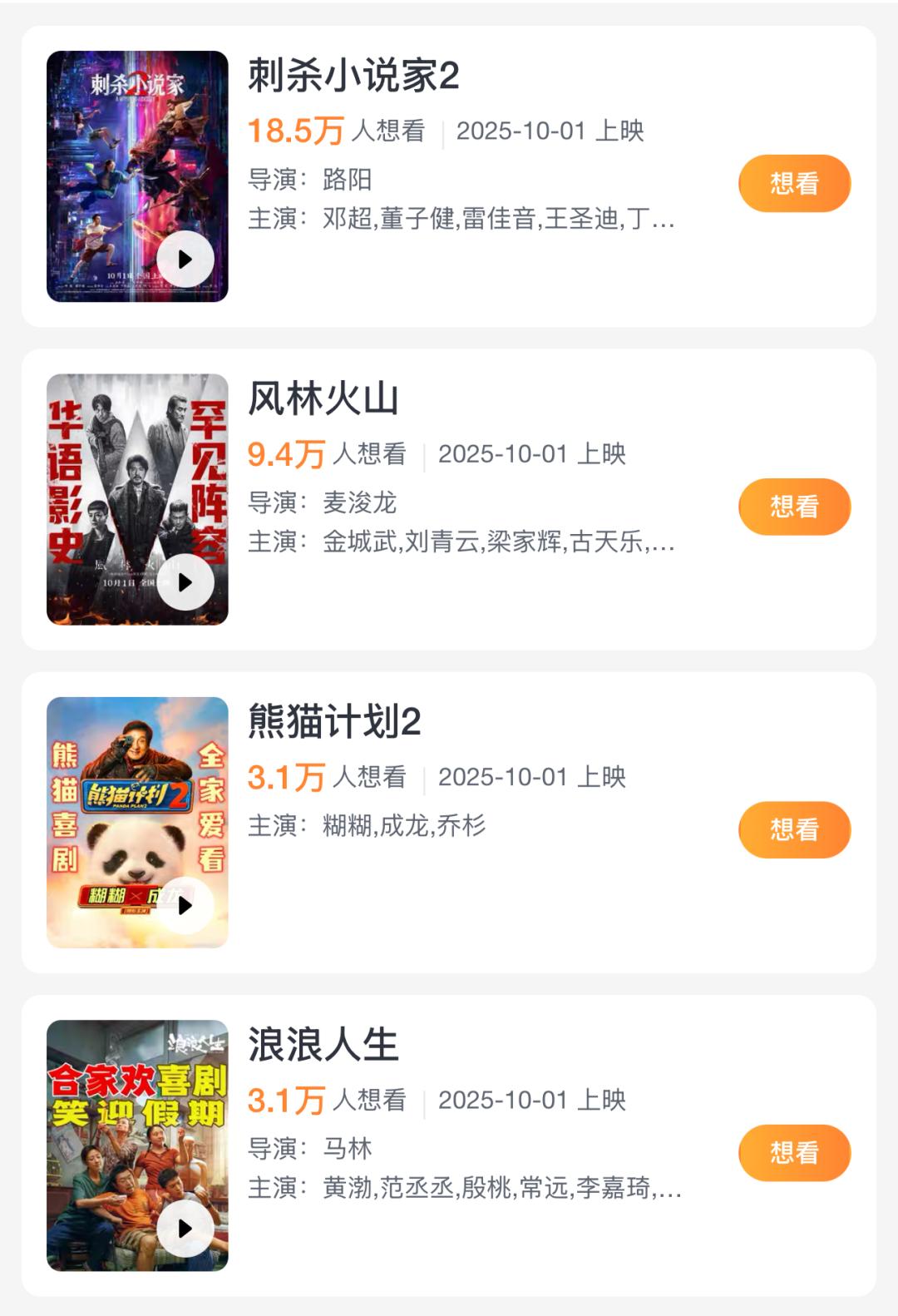 2025国庆档影片的竞争格局较为明朗。