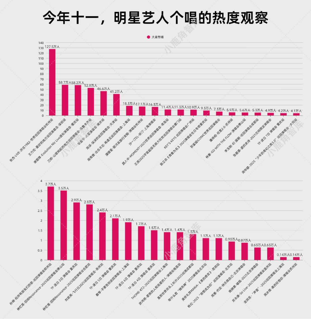 而张杰、周深、刀郎、谢霆锋、林忆莲、刘若英、周传雄、华晨宇、王力宏等头部歌手依然活跃在路上。与此同时,“拼盘演唱会” 今年国庆异军突起,以 “多明星 + 低票价” 为核心,集中落地北方二三线城市,也填补了下沉市场的演出空白,与个人演唱会聚焦一线城市的布局形成互补。