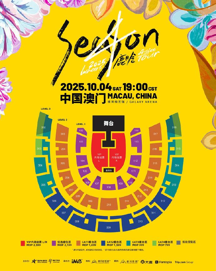 在个人演唱会中,票价天花板由鹿晗打造,“Season 4 亚洲巡演” 澳门站的内场最高票价达 2599 元,可能会成为十一期间票价最高的演唱会。紧随其后的是郭富城、陈立农的个人演唱会,最高票价均为 1880 元;周深 “深深的巡回演唱会” 天津站、王力宏 “最好的地方巡回演唱会” 的内场最高票价也处于中高区间,分别为 1699 元与 1680 元。