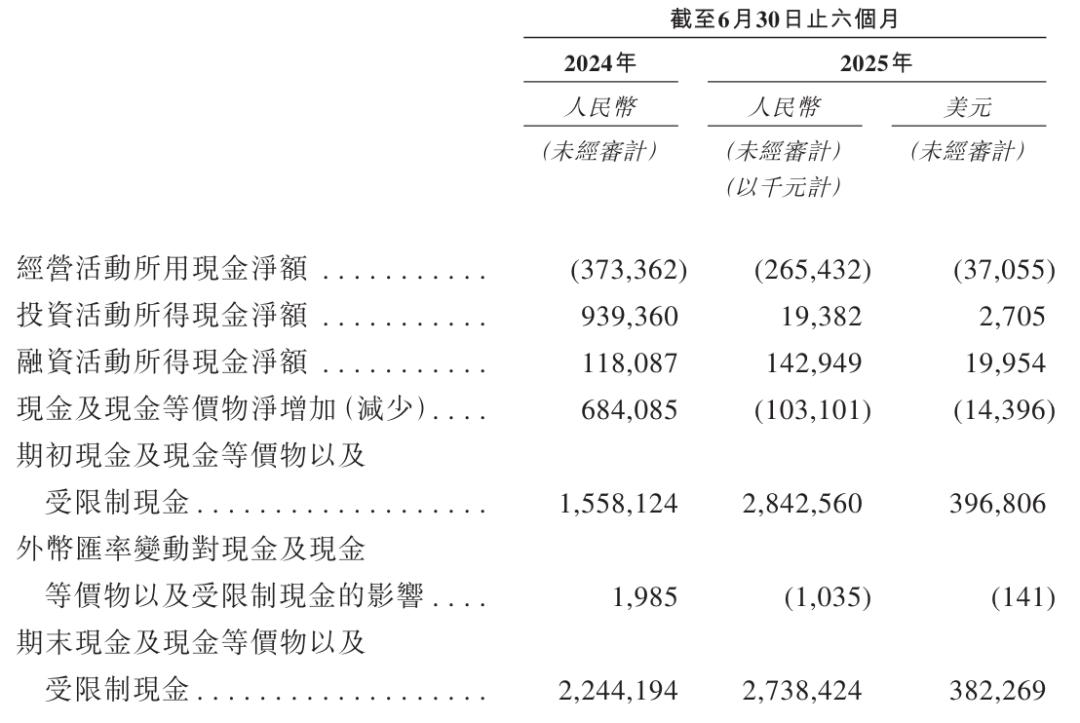 截至2025年6月30日,禾赛持有的现金及现金等价物、限制性现金27.38亿(3.82亿美元)。