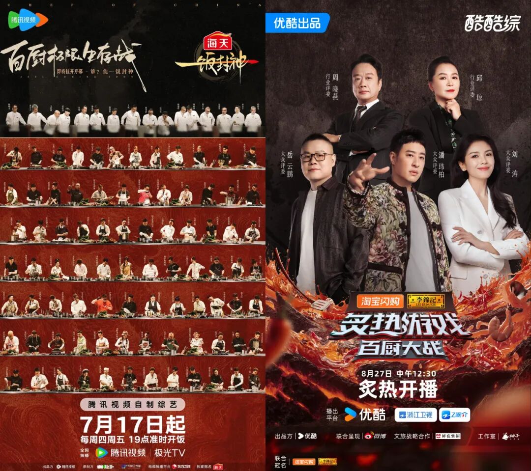 跟随着全球市场的厨综创作风向,国内长视频也开始集中发力美食竞技综艺,近期腾讯视频的《一饭封神》和优酷的《炙热游戏:百厨大战》先后上线开打,爱奇艺的《美味的胜利》、抖音的《闪光厨神》也均在制作中。
