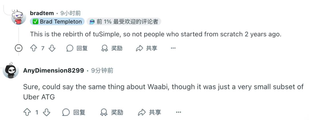 有人认为如此快的进度,显然不是“从0开始”,而是吸收了很多之前的旧部,就如同Waabi吸收了大量前Uber团队:
