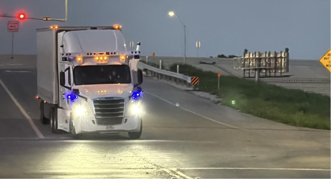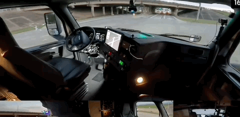测试全程40英里(64公里),类似国内这样人车混行的极端复杂场景其实并没碰到,但显然是真实的美国卡车长途运输的难度。