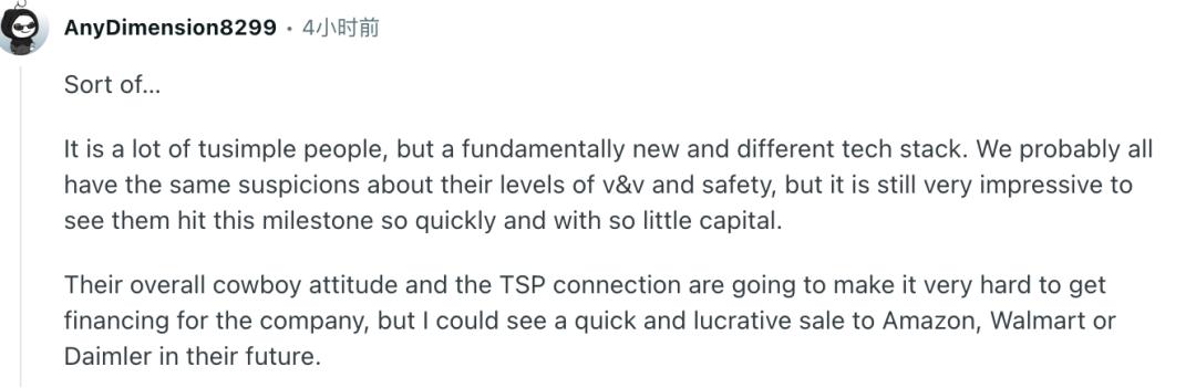 有人认为侯晓迪关于“友商”烧钱的发言,显然是冲着Aurora trash talk,并且希望不要重蹈图森覆辙: