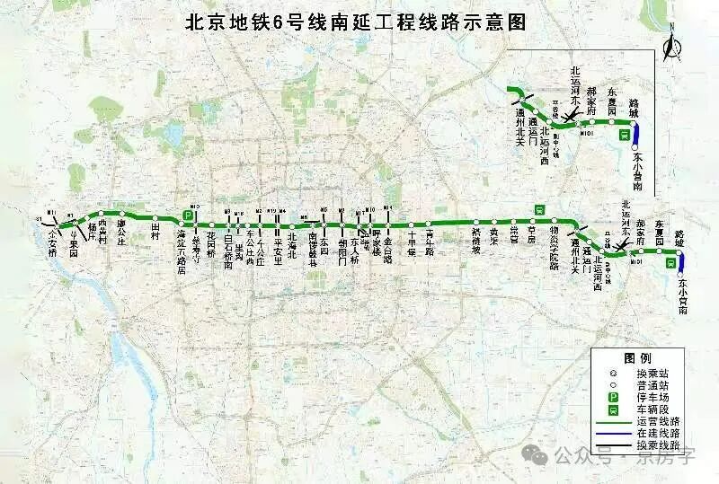 6号线南延将从潞城站向东再向南延伸,全长约2.1公里,设东小营南站。