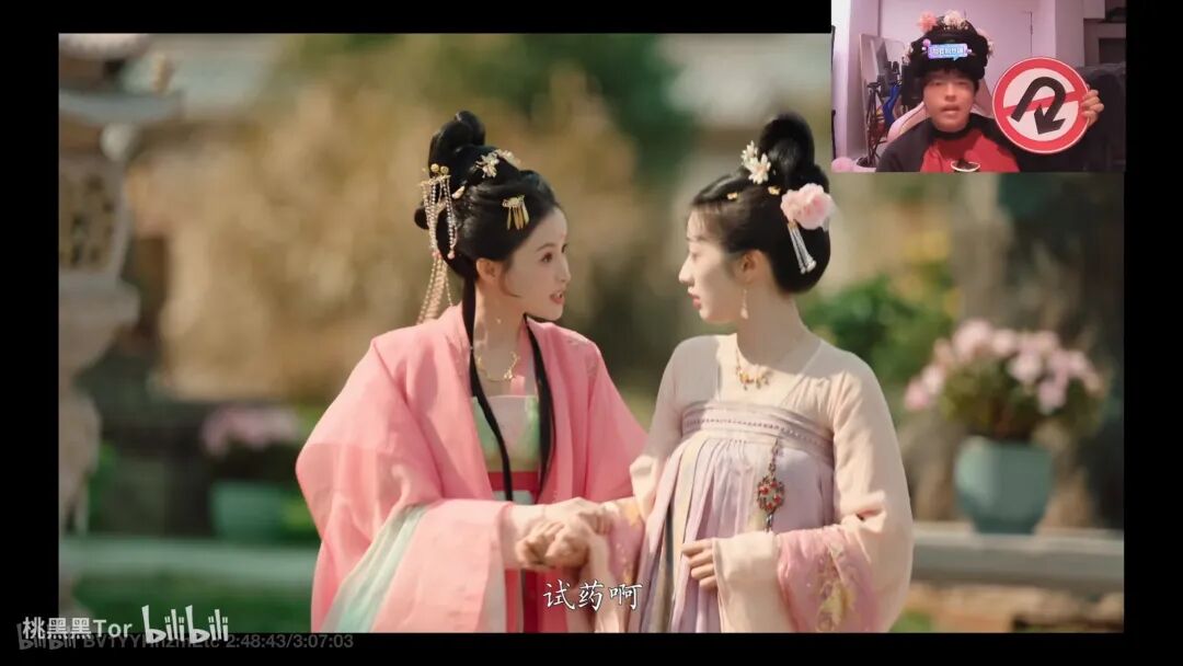 这些“爆点”在主播直播过程中被发掘,形成强烈的节目效果,接着作为“名场面”在切片中被进一步二创、流传。比如面对皇帝的“龙眼”,@桃黑黑 第一时间吐槽“我还开了个桂圆”;太子、称心的剧情甫一开始,@桃黑黑 秒认出两人关系,一边恨铁不成钢“皇帝把你的龙耳竖起来”,一边调出以前的录音,开始循环播放自己的破锣嗓子“皇帝你儿子是gay啊”。后续更是不知从哪里掏出一块“禁止转弯”的交通牌,“咱们宫中三令五申不准搞这一出”。