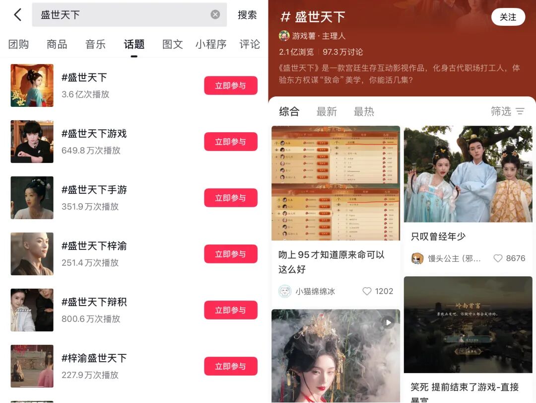 《盛世天下》何以火出圈?从题材上看,宫斗类作品向来拥有着极其稳定且庞大的受众群体,女性主导的叙事、极致的戏剧冲突都让这一类型作品有着强大的市场号召力。尤其在经历过爆款影视作品洗礼后,对“甄学十级”的用户来说,沉浸式玩一场后宫生存游戏本身就有着强大的吸引力。