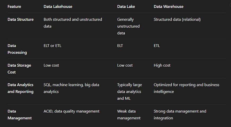 •Data Lakehouse结合了两者的优点,提供了灵活性和性能。