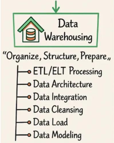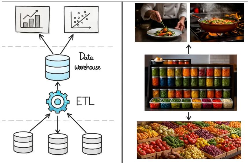 •数据清理与集成:在数据仓库中,ETL(提取、转换、加载)流程用于清理和合并来自不同来源的数据。此过程确保数据以一致的格式加载到仓库系统中,并且干净可用。