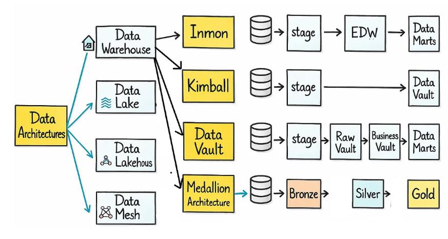 数据仓库设计中使用的不同方法对系统的灵活性、性能和效率有重大影响。在本文中,我们将研究流行的数据仓库设计方法,例如 Inmon、Kimball、Data Vault 和 Medallion,然后对 Medallion 架构进行更深入的解释。