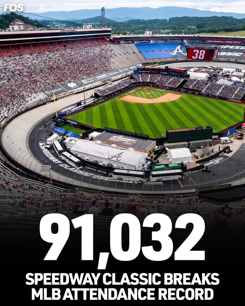 为了打破尘封71年的常规赛上座纪录,MLB把棒球场搬上了NASCAR的经典赛道——布里斯托尔赛车场(Bristol Motor Speedway),工程花费了近1.7万吨碎石、340吨粘土、12.4万平方英尺的合成草皮,更有上百名工作人员的日夜奋战。