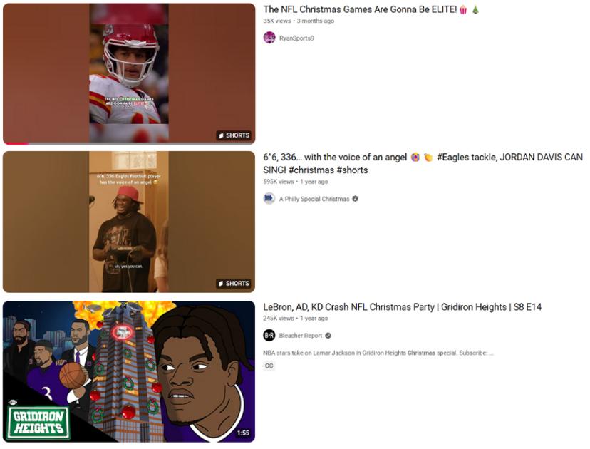 Youtube上关于NFL圣诞大战的短视频获得上万播放量