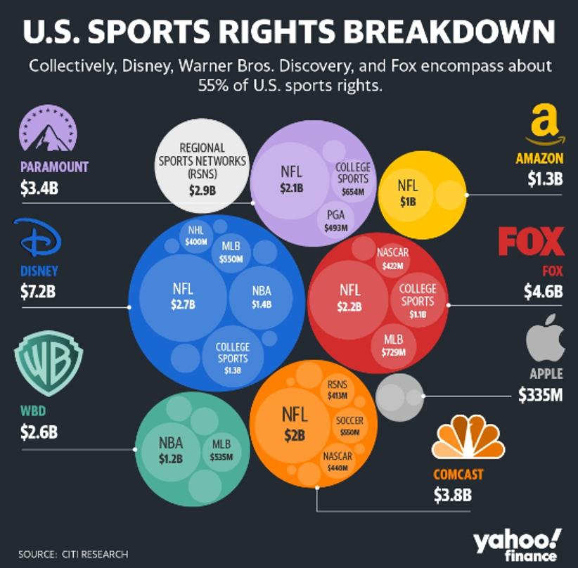 2024年3月,Citi Research得出的美国体育版权细分图