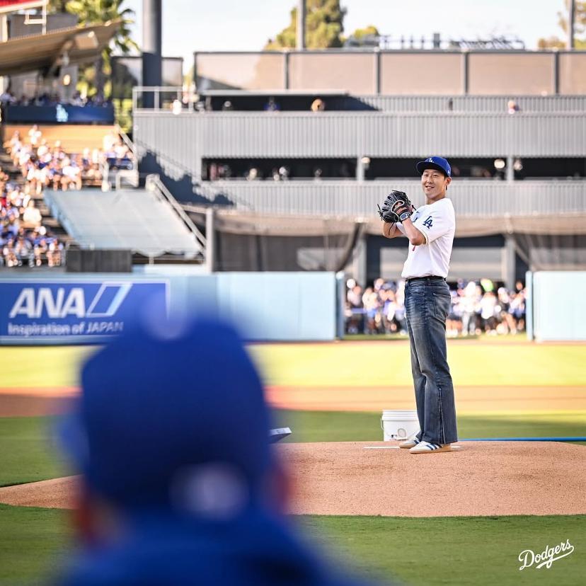 孙兴慜出席道奇队的开球仪式。图源:道奇队社媒