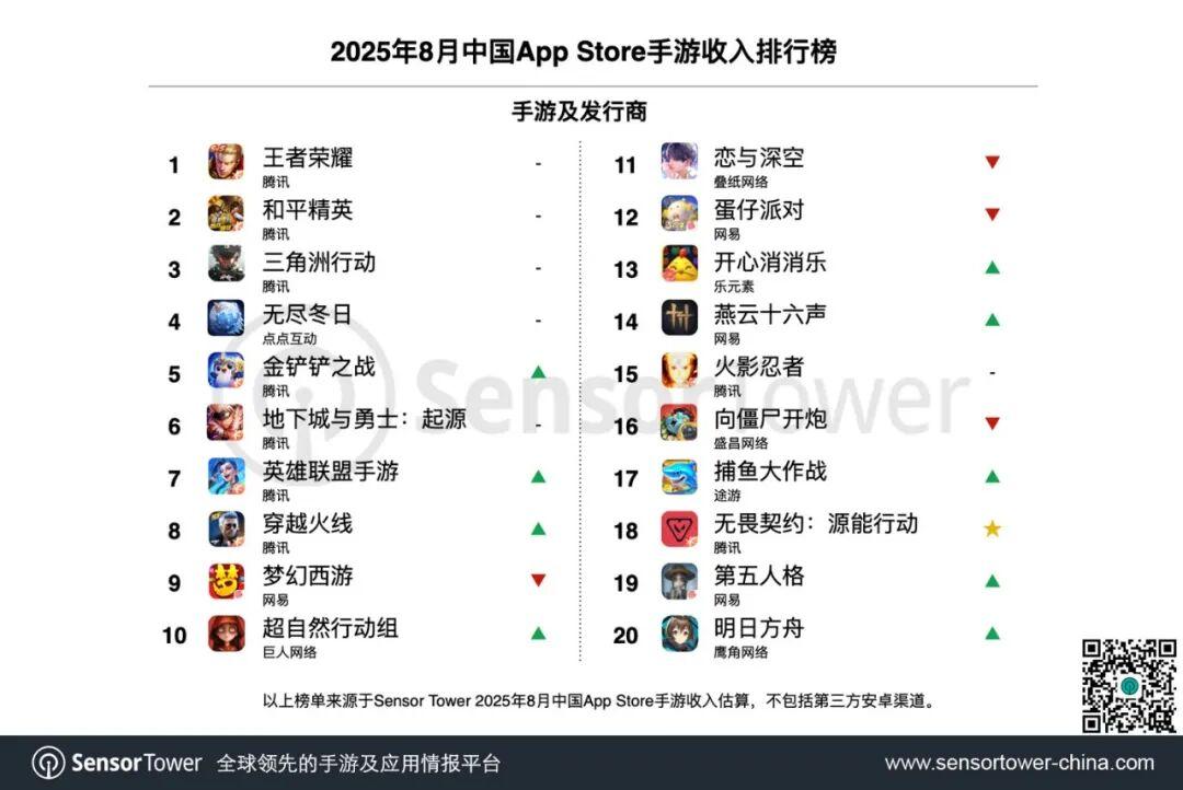 翻看Sensor Tower在7月的收入榜单TOP20会发现,米哈游旗下产品《崩铁》《原神》均在列,但在一个月后却跌出了TOP20榜单。与此同时,国潮二次元产品《归龙潮》也在8月宣布产品即将停服。