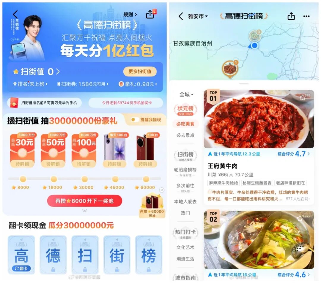 再则,结合淘宝闪购的即时零售数据,甚至可以推出下午茶、夜宵等差异化补贴,来增强团购的活性,就像之前“高德扫街榜”就投入超10亿元补贴,包含2亿打车券、9.5亿消费券及3000万现金激励。