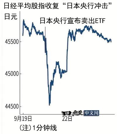 日本央行9与19日发表了出售ETF的方针,之后日经平均股指一度比前一天下跌800点以上。不过,ETF的出售速度按时价计算为每年6200亿日元左右,要全部卖光单纯计算需要100年以上。目前有分析认为这对市场的影响轻微,22日投资者纷纷重新买入日股。与19日低点相比的日经平均股指涨幅接近1000点,收复了下跌。