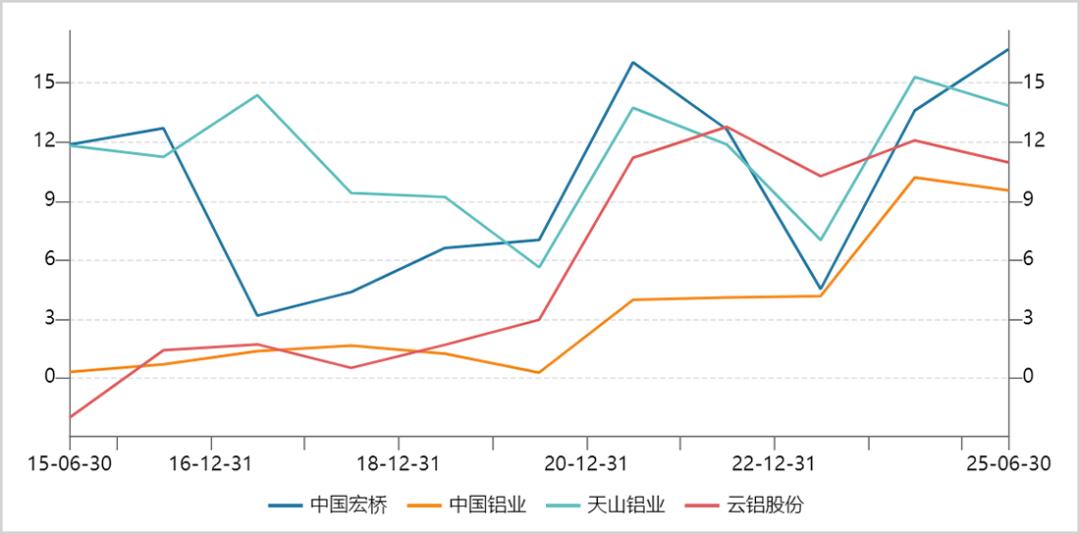中国电解铝企业因供给侧改革大为获益,业绩已有所体现。2024年,中国宏桥、中国铝业、天山铝业、云铝股份的归母净利润同比增长95%、85%、102%和12%。