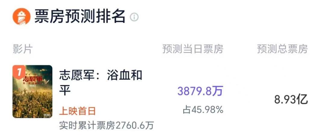 前两部《志愿军》,票房累计超过20亿,也获得了不少观众的喜爱。虽然因为演员阵容、投资与宣发成本等原因,票房不及陈凯歌导演的《长津湖》,但作为国庆档唯一战争大片,又是在抗日战争暨世界反法西斯战争胜利80周年的国庆档,《志愿军3》的强度毋庸置疑。