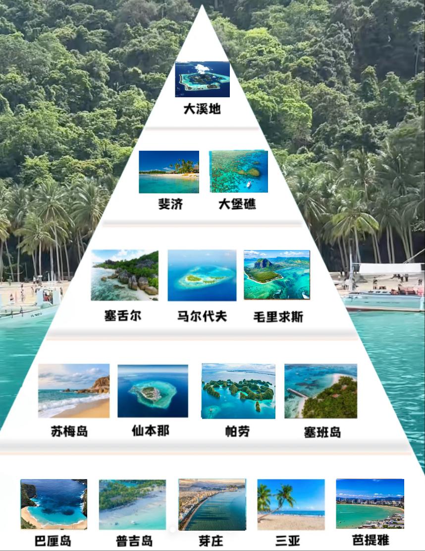 而在这无数的踩坑与避坑之间,喜爱离岸上岛的旅客们,也逐渐总结出了一条经典的海岛游鄙视链。