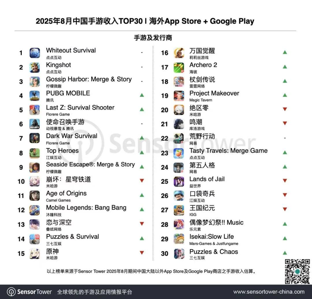 《无尽冬日》《奔奔王国》包揽8月出海收入榜TOP 2