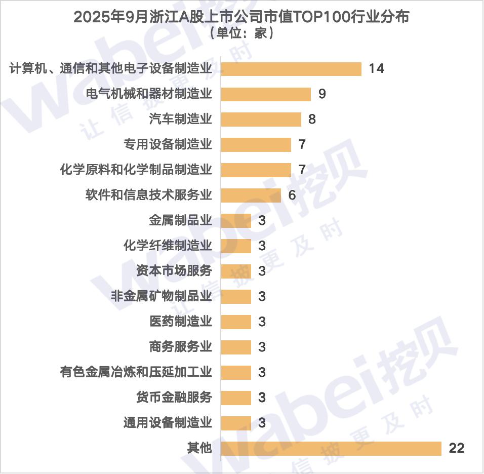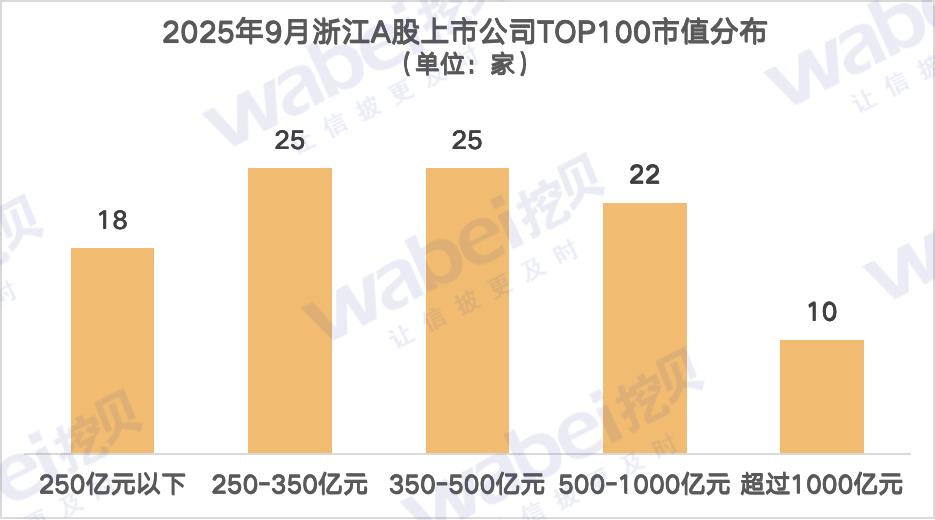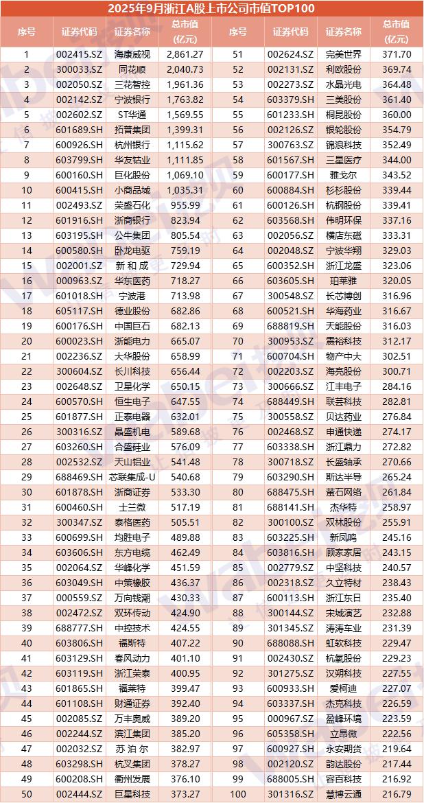 2025年9月浙江A股上市公司市值TOP100:10家公司市值超过1000亿元