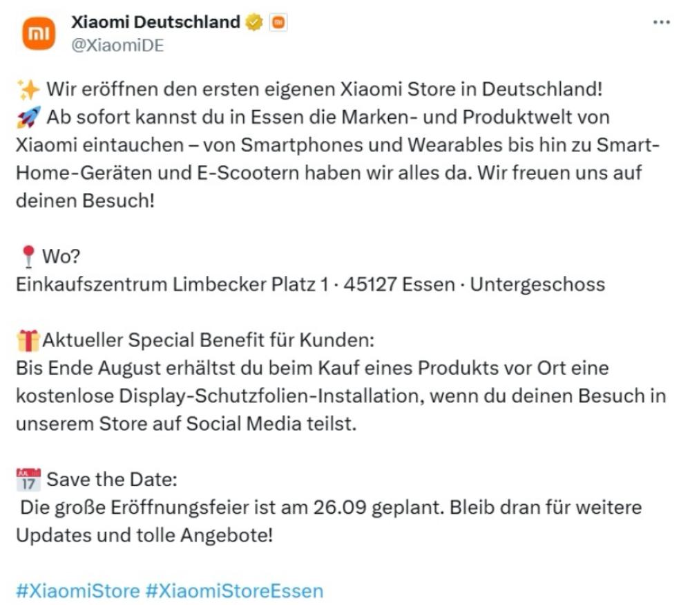 同时小雷还查到个有意思的信息,小米在德国的首家直营店恰好在9月份开张,除了销售小米15系列手机外,对于购买小米15 Ultra的用户还提供1欧元换购REDMI Pad SE等活动,优惠力度并不小。