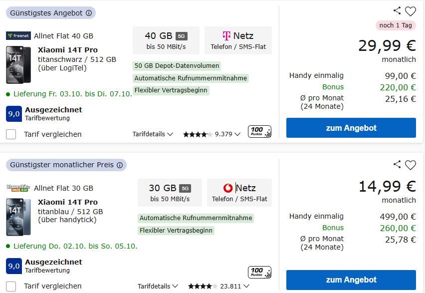 或者也可以选Telekom(T-Mobile)的29.99欧元合约,有40GB流量的同时购机价格只要99欧元(并返利220欧元),算下来比Vodafone的套餐还便宜,看到这里,估计不少读者都已经回过味来了。