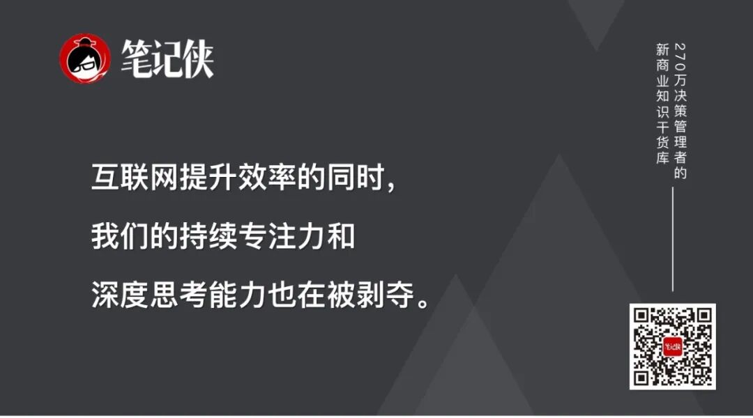 殊不知,互联网提升效率的同时,我们的持续专注力和深度思考能力也在被剥夺。
