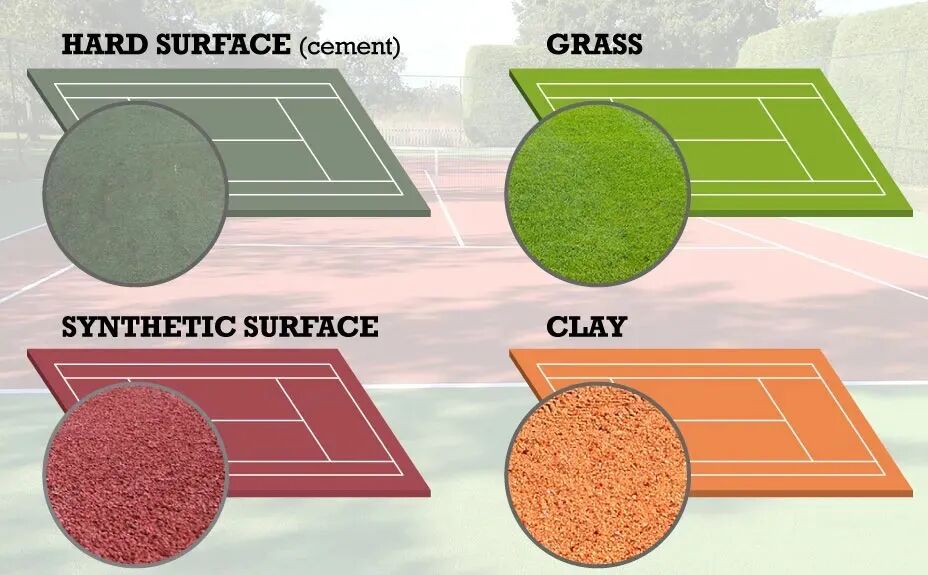 按照网球的四大赛事,温网、法网、美网和澳网,分别对应的比赛场地为草地、红土、混凝土硬地和硬地。