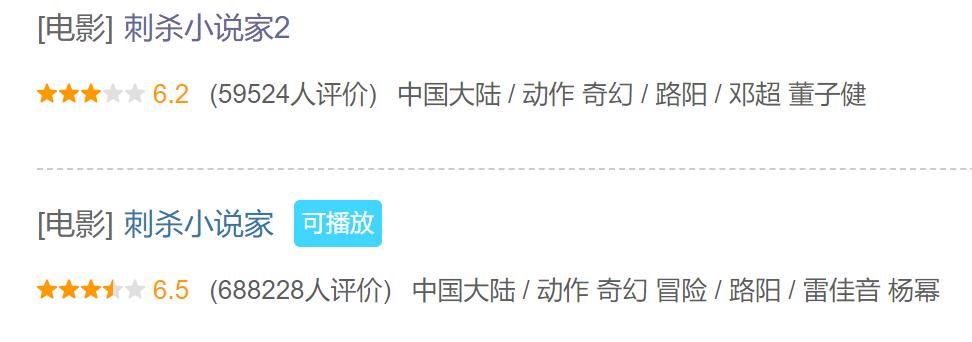 《浪浪人生》《刺杀小说家2》《三国的星空第一部》算是被口碑毁了的典范。两部真人片的豆瓣评分分别是6.4和6.2,只比及格线稍稍好一些。
