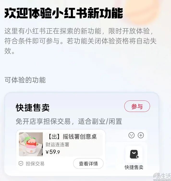 小红书正在向闲鱼下战书。近日小红书方面开始测试“快捷售卖”功能,以便用户搞副业、出闲置。
