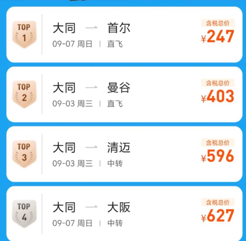 暑期,大同云冈机场推出一批特价出境机票,299元飞韩国、599元飞俄罗斯,就连从大湾区飞来大同的机票,价格也稳定在200-300元区间。