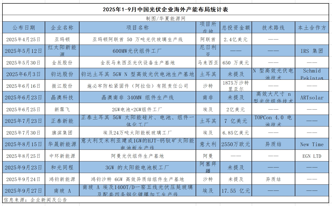 华夏能源网不完全统计,2025年以来至少有14家中国光伏企业公布在海外建厂计划,投资总规模近200亿元,中东及周边地区是最受青睐的出海热土。