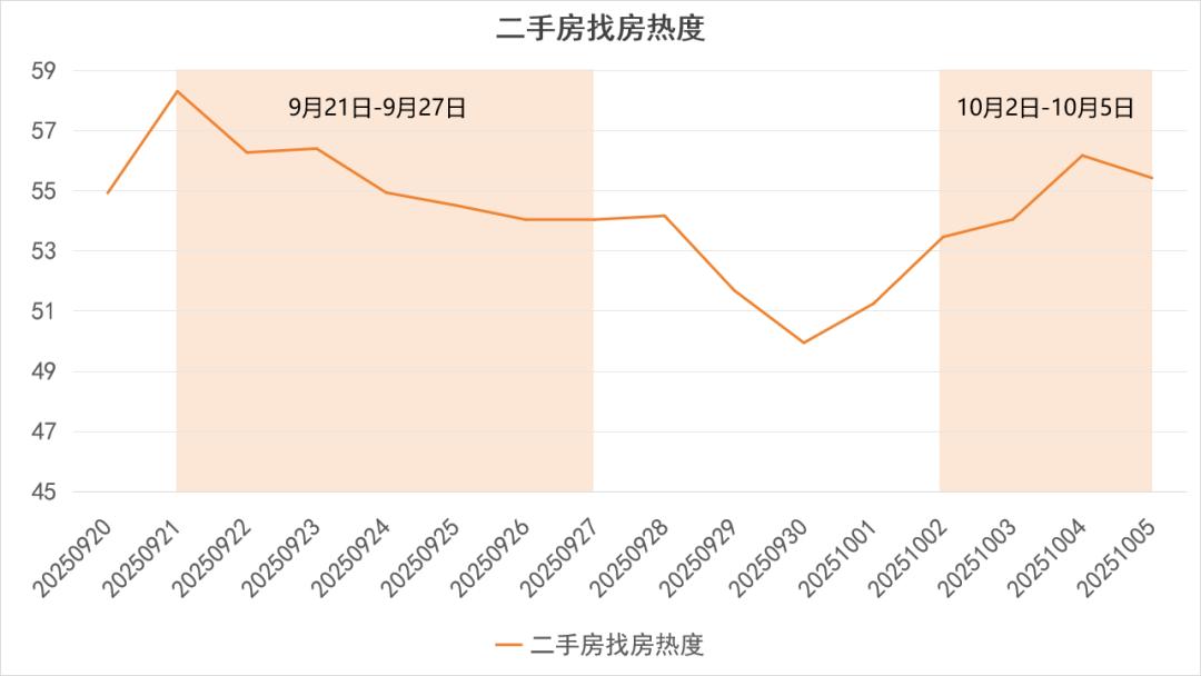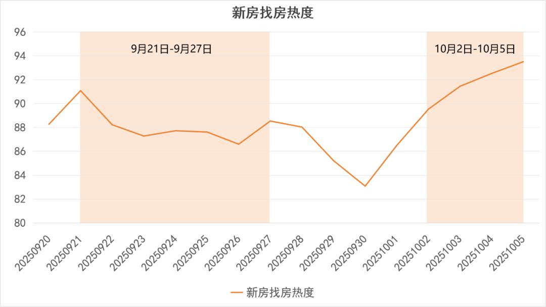 但从环比(25年10月2日到10月5日与 9月21日-27日的日均热度对比)来看,新房和二手房的走势出现了明显分化:
