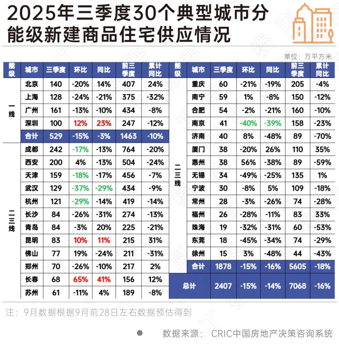 三季度商品住宅新增供应下降15%,深昆长等一二线逆势增长