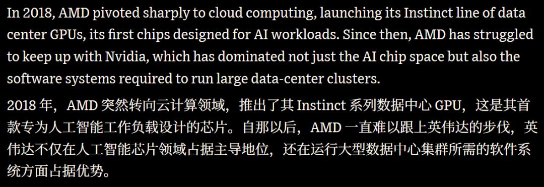 虽然AMD有机会切入,但与英伟达的差距短期难以跨越。