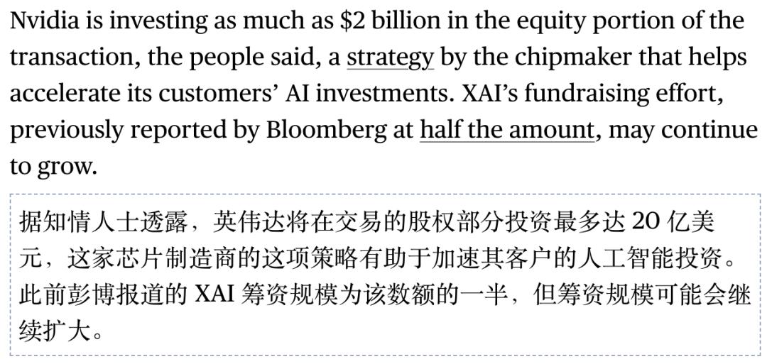 此次融资中,英伟达深度参与,出资最高20亿美元,并以GPU为抵押参与融资。