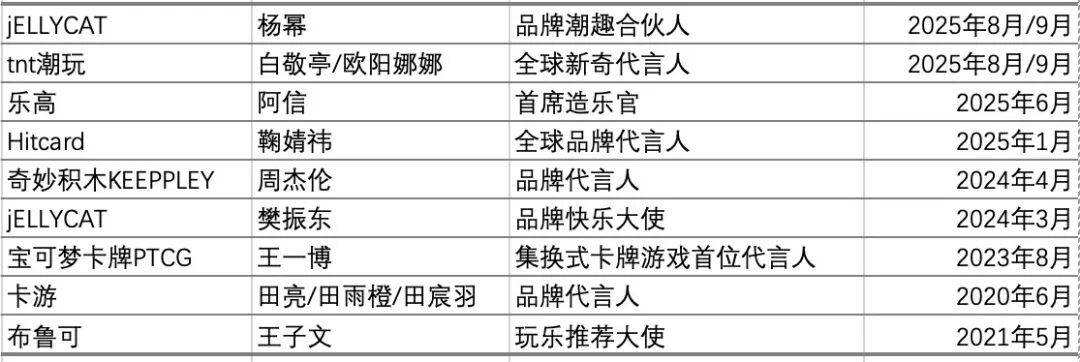 除了摆脱“炒作”的路径依赖,多家玩具潮玩卡牌公司也在强化明星策略。签约“品牌代言人”动作显著增多。