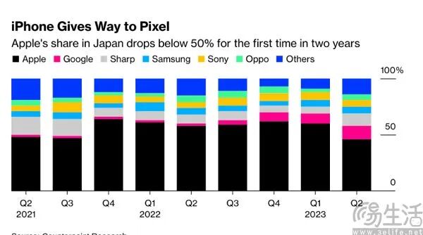 在此前相当长的一段时间里,用“躺着赚钱”来形容iPhone在日本市场的境遇可以说是一点也不为过。然而在过去一年多时间里,日本消费者对于iPhone的兴趣却在持续下降。根据IDC公布的相关数据显示,今年第二季度iPhone在日本市场智能手机出货量中的份额为46.4%、同比下降6.4%。