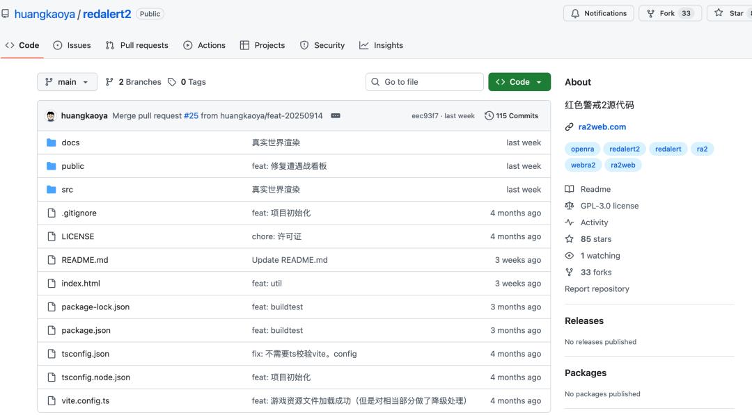 目前 GitHub 上有个叫 redalert2 的仓库,里面反编译了 Chrono Divide 的代码并开源,大家有兴趣的或者也想重制一个网页红警,可以逛一逛。